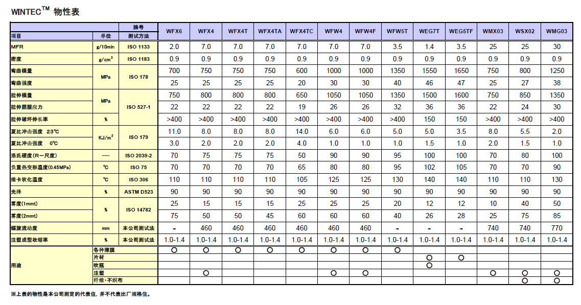 JPP聚丙烯树脂,商品名Wintec,应用于食品包装膜,保护膜,锂电池铝塑膜。